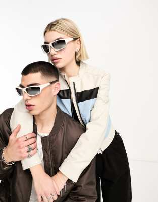 AJ Morgan wrap sunglasses in off white with mirrored lens