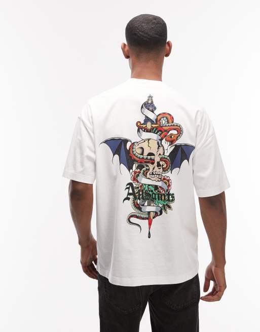 AllSaints Blade graphic logo t-shirt with back and chest prints in white