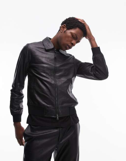 AllSaints Gen leather bomber jacket in black