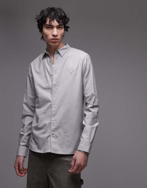 AllSaints Haven long sleeve shirt in whisper gray