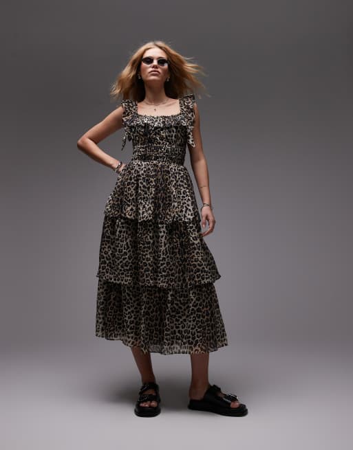 AllSaints Salonda tiered maxi dress in leopard print