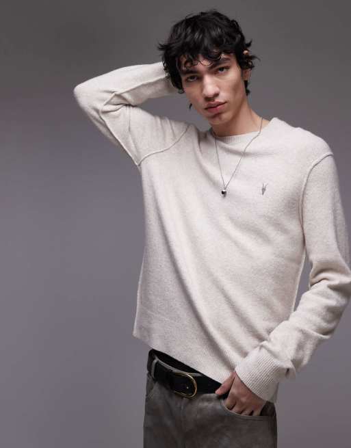 AllSaints Statten ramskull wool blend sweater in oatmeal