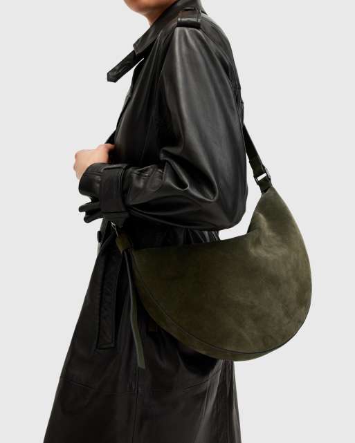 AllSaints suede half moon shoulder bag in green