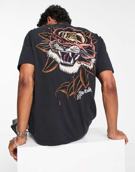 AllSaints Tiger Rose back graphic T-shirt in black