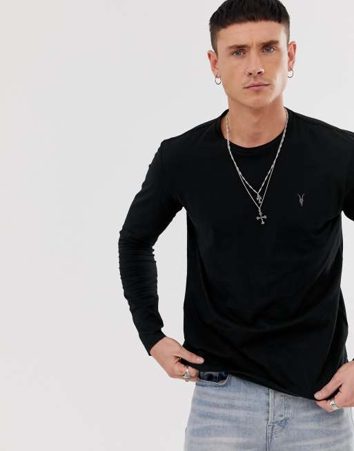 AllSaints Tonic long sleeve ramskull logo t-shirt in black