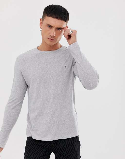 AllSaints Tonic long sleeve ramskull logo T-shirt in gray heather