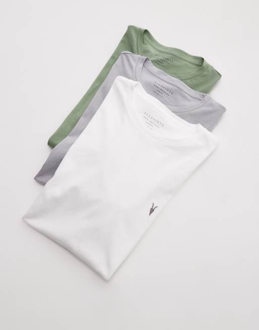 AllSaints Tonic T-shirt 3 pack in White/green/gray
