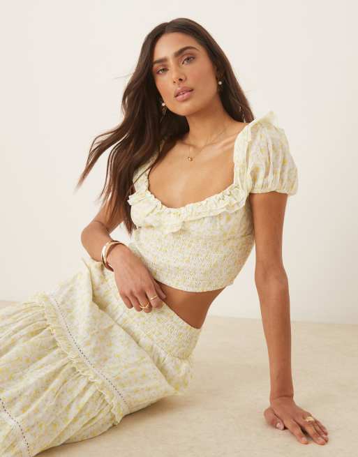 Amy Jane London Adeline sweetheart crop top in lemon ditsy - part of a set
