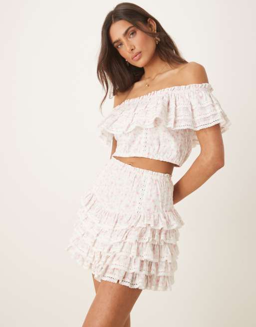 Amy Jane London Gaia ruffle mini skirt in pink ditsy - part of a set