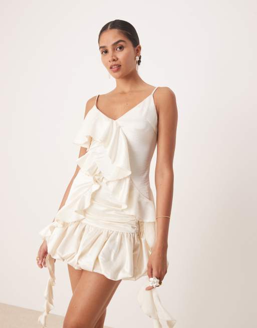 Amy Lynn asymmetric ruffle longline cami top in ecru satin - part of a set
