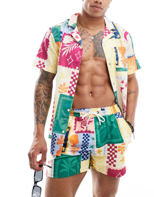 Another Influence beach shirt in postcard print