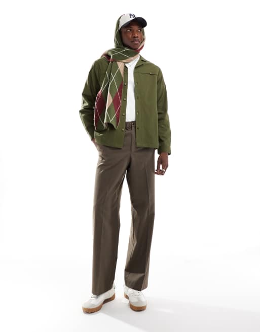 Another Influence camp collar utility shirt in olive