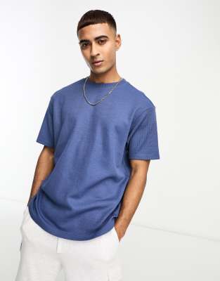 Another Influence heavy ribbed slouchy fit t-shirt in navy