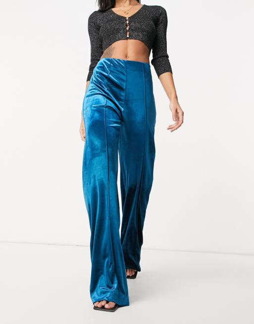 AQAQ high waist velvet coordinating pants in petrol blue