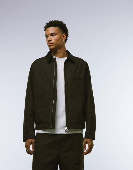 ARKET canvas zip front workwear jacket in brown