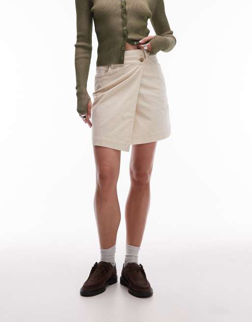 ARKET corduroy wrap mini skirt in light beige