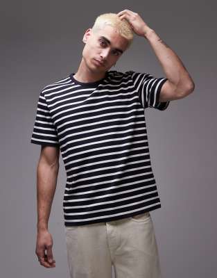 ARKET heavyweight oversized T-shirt in blue and white stripes