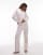ARKET mix and match cotton long sleeve button up pajamas with white contrast piping in beige