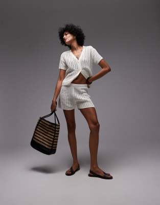 ARKET paper knit beach shorts in off white