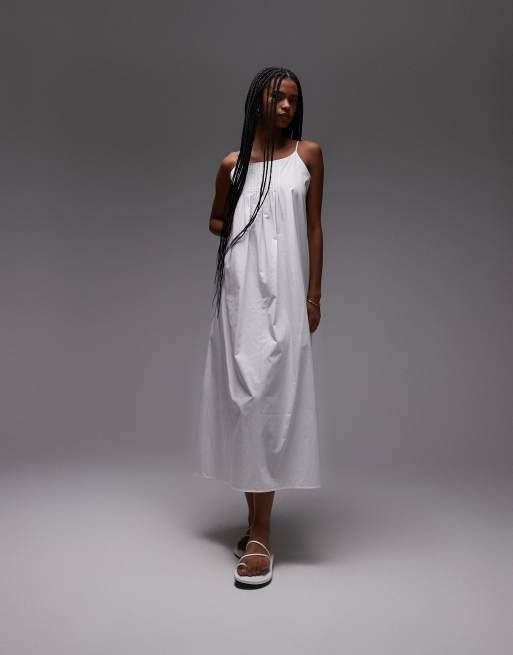 ARKET pure cotton poplin maxi beach dress with spaghetti straps in white