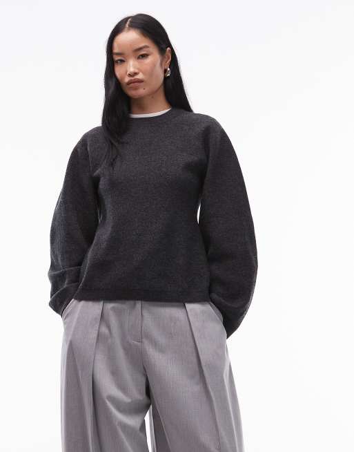 ARKET pure wool cinched waist sweater in dark gray