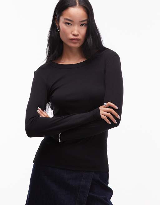 ARKET ribbed jersey long sleeve top with boat neck in black