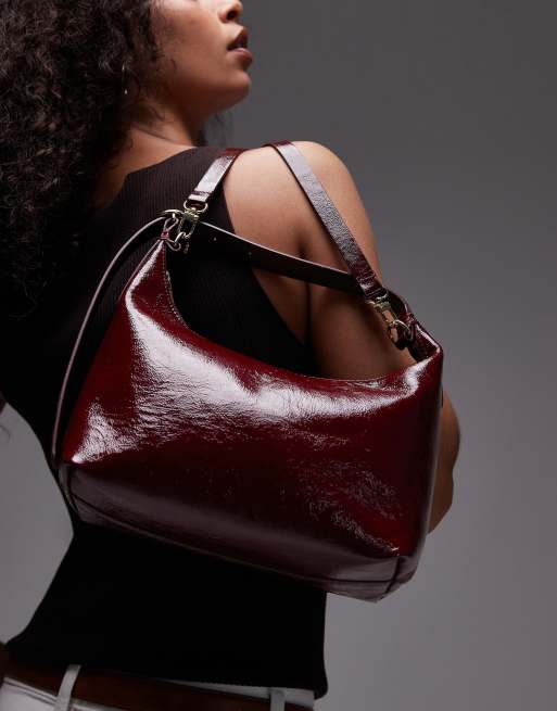 ARKET small suede leather detachable cross body tote bag in dark cherry red