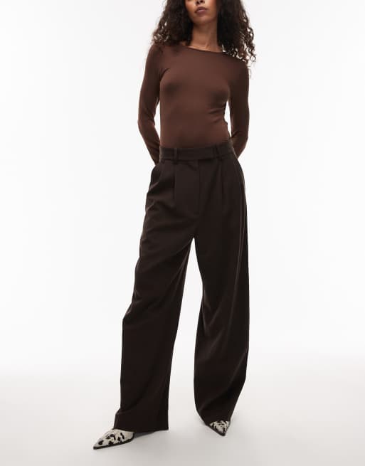 ARKET stretch wool blend tailored straight leg pants in brown