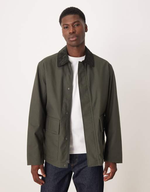 ARKET waxed cotton jacket with contrast cord collar in dark khaki green