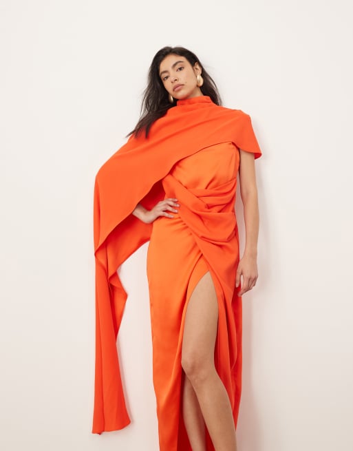 ARRANGE asymmetric caped maxi dress in red