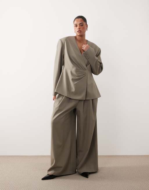 ARRANGE Curve draped tailored wide leg pants in light gray