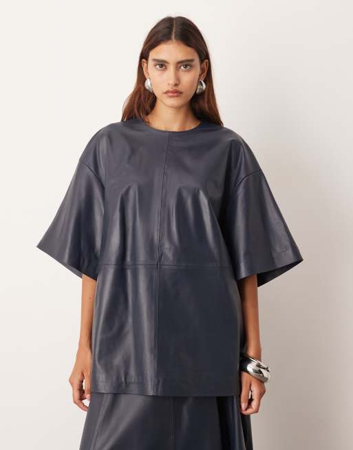 ARRANGE leather boxy T-shirt in navy - part of a set