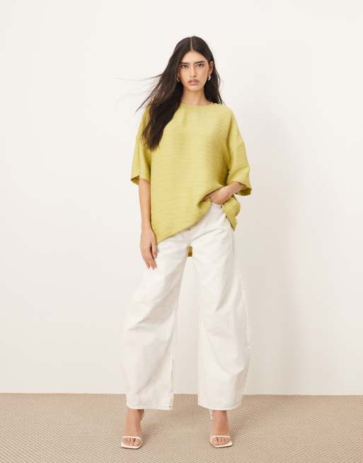 ARRANGE oversized textured boxy woven T-shirt in lime