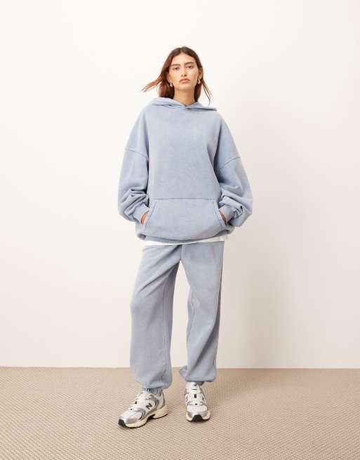 ARRANGE premium acid wash hoodie and sweatpants in soft blue