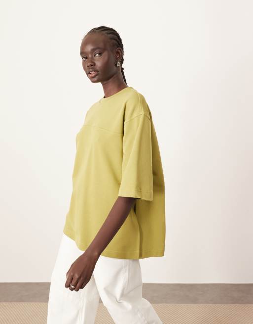ARRANGE seam detail heavyweight oversized t-shirt in olive green