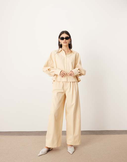 ARRANGE structured pleat detail wide leg barrel pants in buttermilk