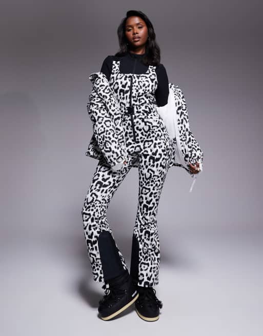 ASOS 4505 Ski soft shell belted water repellent bib overalls in snow leopard