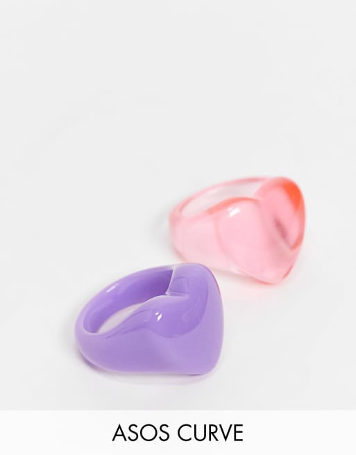 ASOS DESIGN Curve 2-pack rings in heart design in pink and purple plastic
