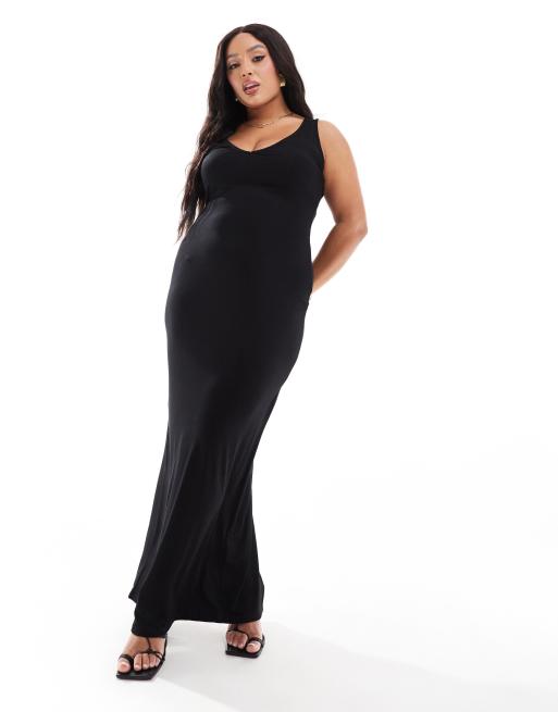 ASOS DESIGN Curve 90s neckline minimal maxi dress in black