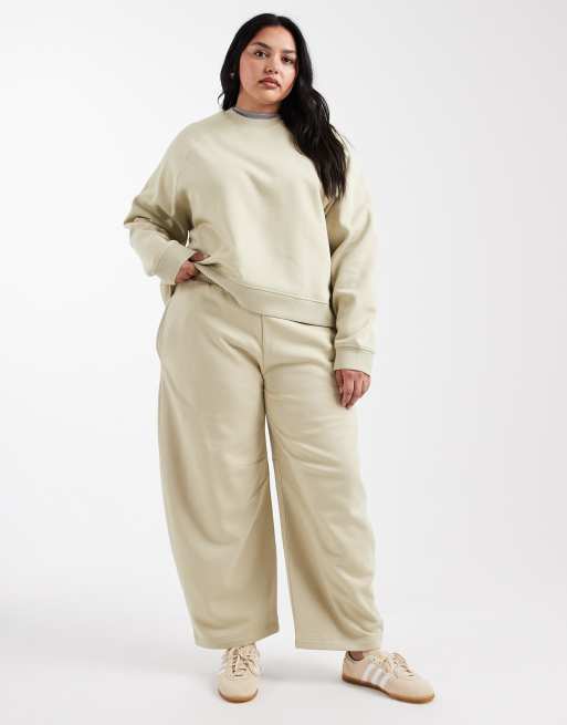 ASOS DESIGN Curve barrel leg brushback sweatpants in olive green