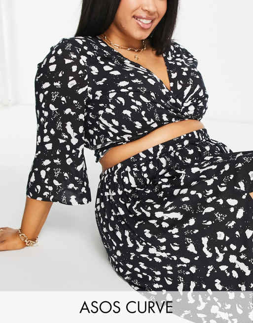 ASOS DESIGN Curve beach crinkle wrap crop top in mono print - part of a set