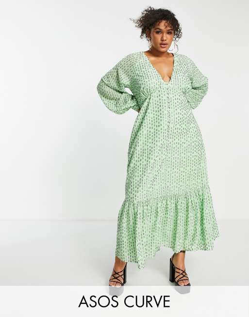 ASOS DESIGN Curve button through metallic maxi tea dress in green