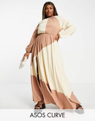 ASOS DESIGN Curve color block maxi dress in mocha and natural texture