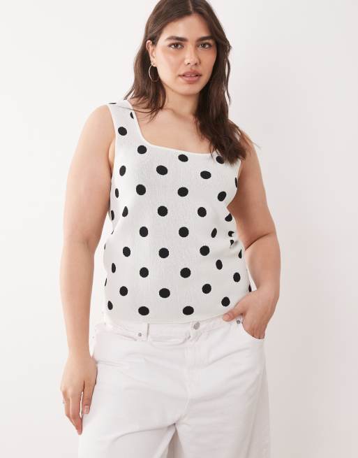 ASOS DESIGN Curve compact square neck cami top in polka dots