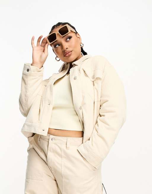 ASOS DESIGN Curve cord jacket with pocket detail in oat