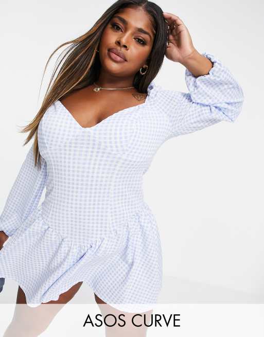 ASOS DESIGN Curve corset drop waist skater mini dress in gingham print