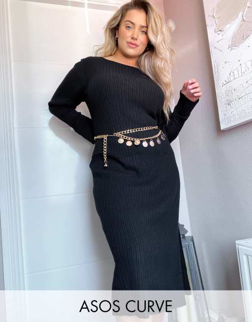 ASOS DESIGN Curve crew neck ribbed midi dress