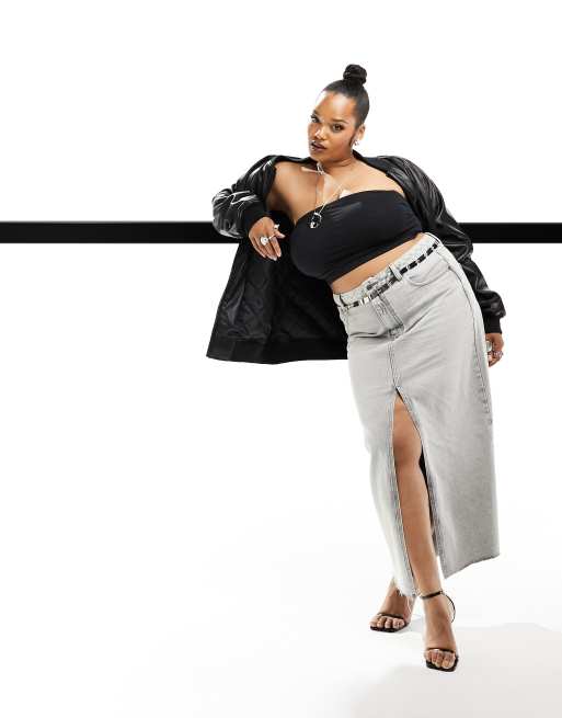 ASOS DESIGN Curve denim maxi skirt in wash gray