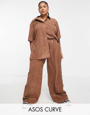 ASOS DESIGN Curve drapey wide leg pants in baby cord in rust - part of a set