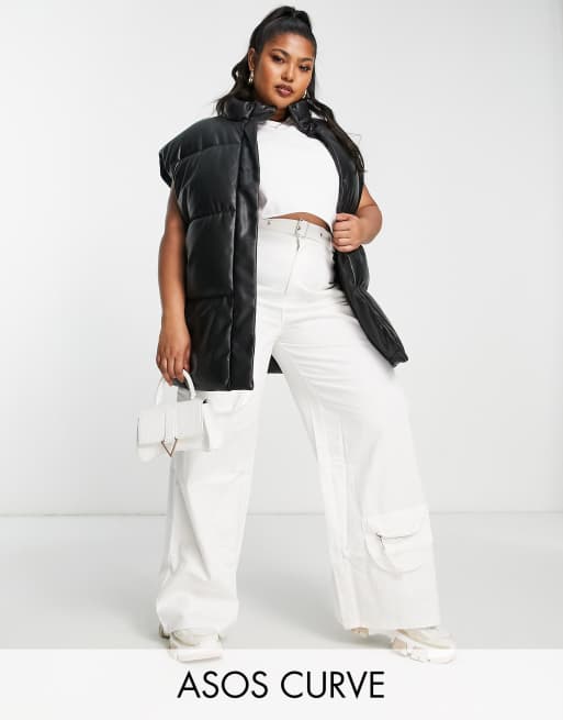 ASOS DESIGN Curve faux leather puffer vest in black